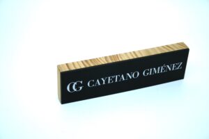 Display en madera y metacrilato impreso, fresado y corte al láser rectangular