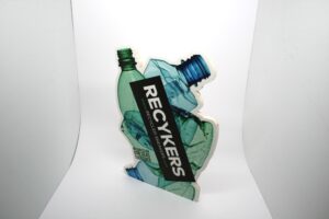 Display en pegasus, impreso y fresado, ideal para presentaciones dinámicas y visuales.